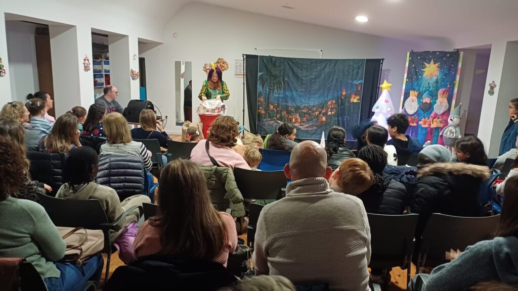 El programa festivo dio comienzo a media tarde con un cuenta cuentos relacionado con el Cartero Real. A su conclusión Papá Noel y su asistente llegaron al centro para recibir a los más pequeños.